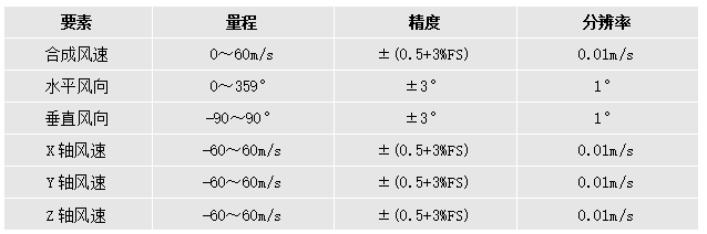 精準(zhǔn)測量三維風(fēng)速風(fēng)向參數(shù)(合成風(fēng)速、水平風(fēng)向、垂直風(fēng)向);
